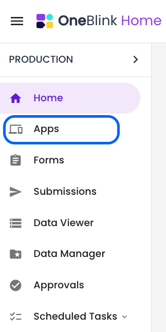 1. To add a new App user click the Apps side menu to view the list of apps.