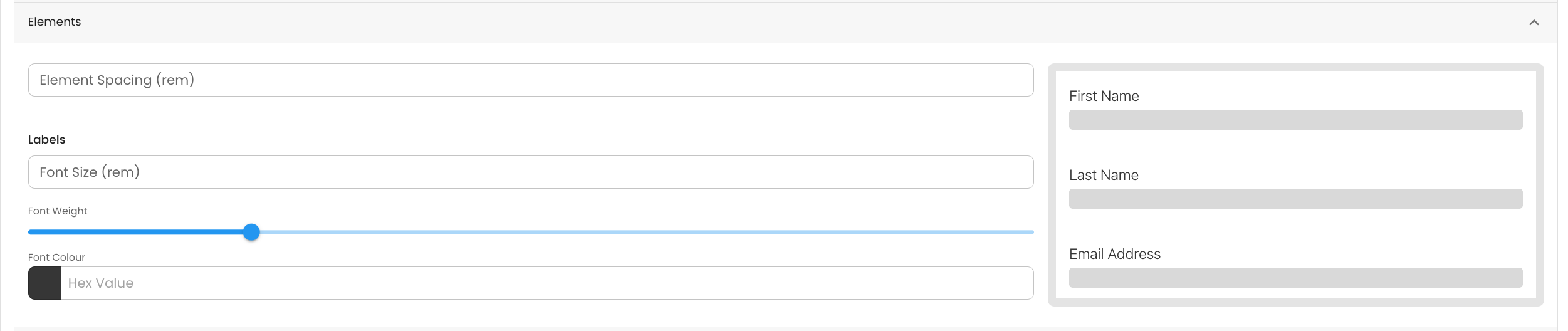 Border Width: Creates a border around the form content, this is to help differentiate between the background and the form itself.
