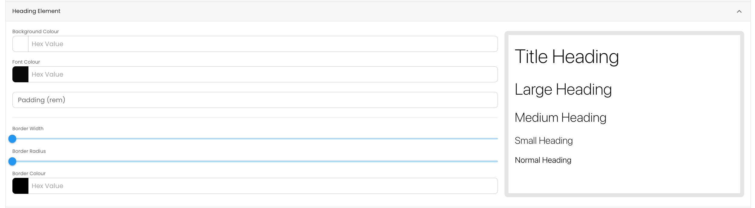 Element Spacing(rem): Adjusts the spacing above and beneath each element.