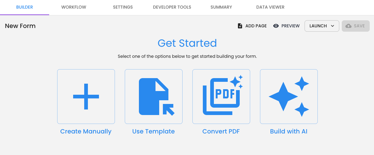 Now, when creating a new form, you will be able to see the 'Build with AI' option.